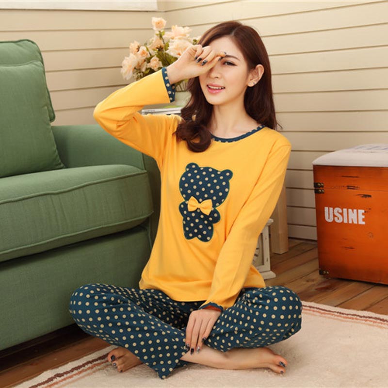 Pajamas women's autumn Korean version cute suit ladies autumn pure cotton long-sleeved pajamas regular Korean version cotton home service
