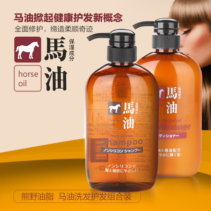 Japan imported horse oil non-silicone oil shampoo conditioner wash care set Anti-chip control oil 600ml*2 bottles