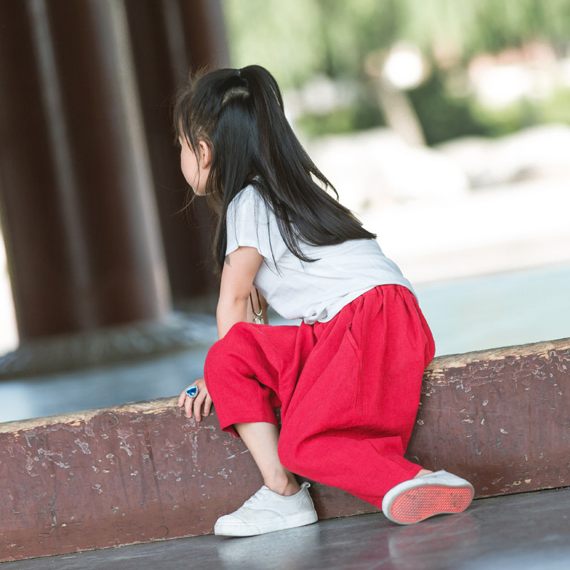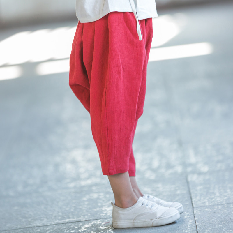 Child cotton linen shorts pants down pants 7 Pants Light Cage Pants Big Fart Pants Loose Kharen Pants Mosquito Pants