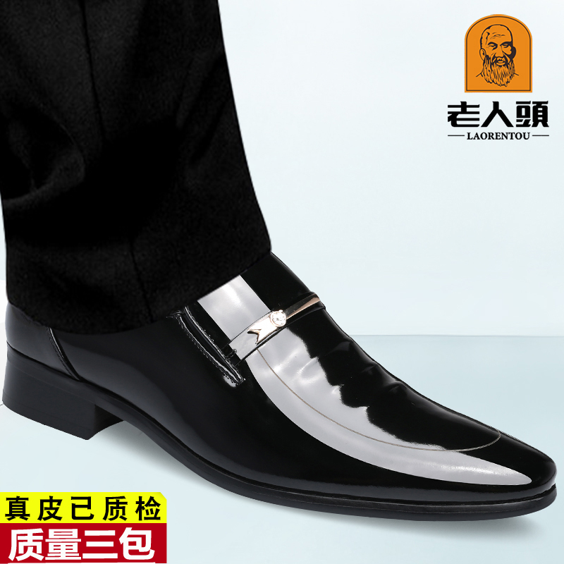 Old man's head men's shoes leather British business formal leather shoes men's pointed toe breathable Korean version plus velvet warm men's cotton shoes