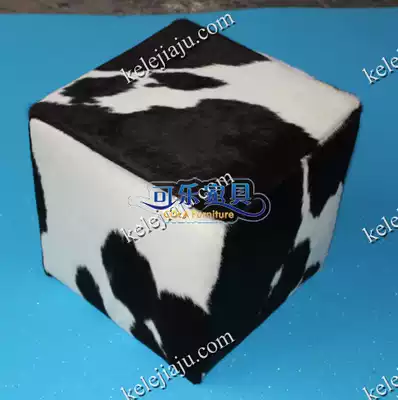 1 grid black and white cow leather small square stool Horse fur low stool shoe stool foot makeup stool square pier