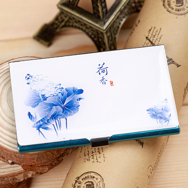 Blue and White Porcelain Business Card Box National Peking Opera Face Makeup Business Card Holder Business Men and Women Business Card Box Chinese Style Gift