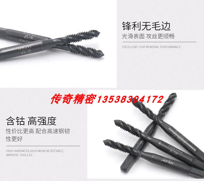YAMAWA oxidation spiral tap 1 4-20 1 4-28 2-56UNC5 16-18 6-32 8-32 black