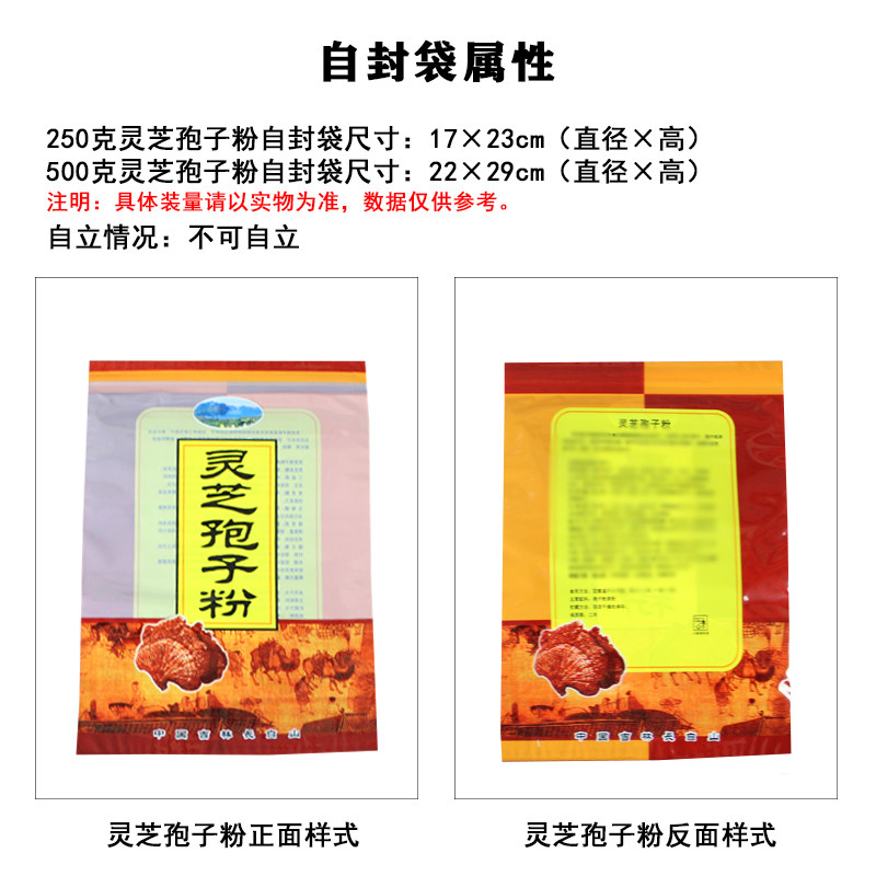 Lingzhi Spore Powder Bag 250 gr 500 gr Self-proclaimed Bag of Lucid Bag Self-proclaimed Plastic Bag with built-in clip chain pocket