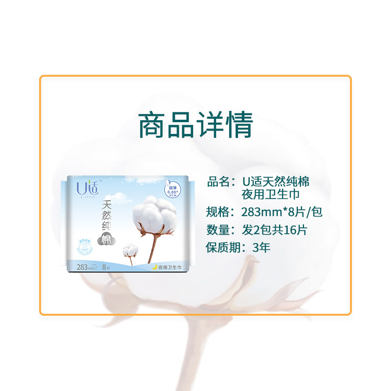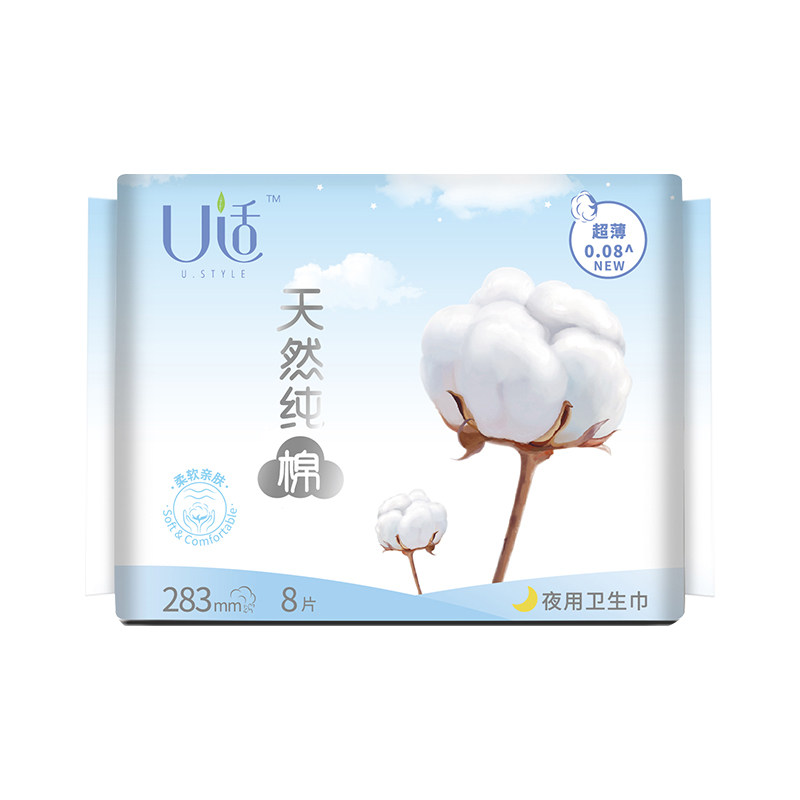 U suitable sanitary cotton pure cotton night with 283mm ultra-thin breathable dry and comfortable Aunt towel Anti-side leakage UD11 *8 sheet