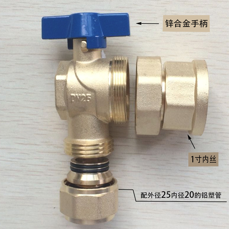 Floor heating water separator angle valve aluminum plastic 20 angle ball valve inside and outside the wire floor heating valve factory direct sales