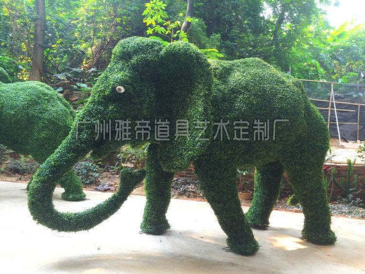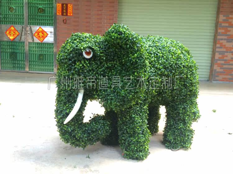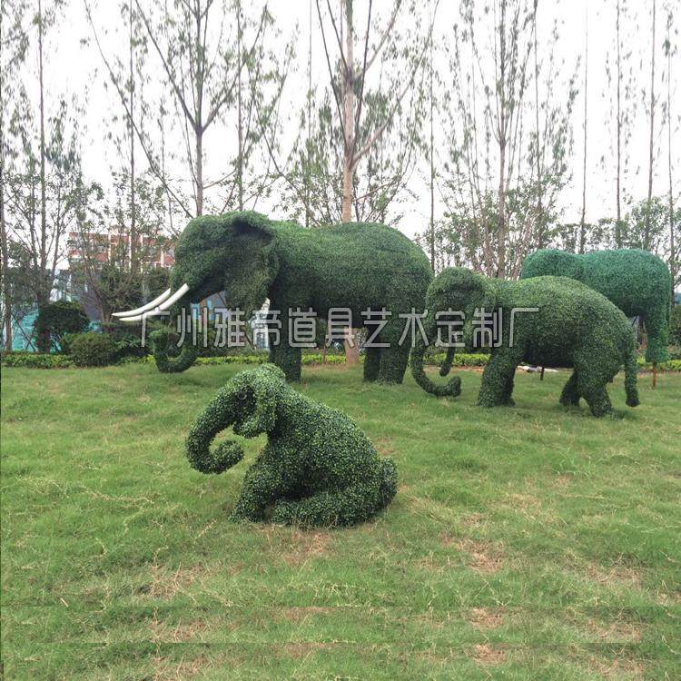 Spring Scenic Area Outdoor Sculpture Five-colored grass graved elephant green sculpture garden soft-clothing