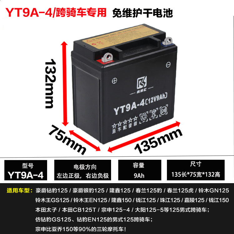 Men's cross bike YT9A-4 dry battery Chaowei 12N9-4B-1 men's car battery