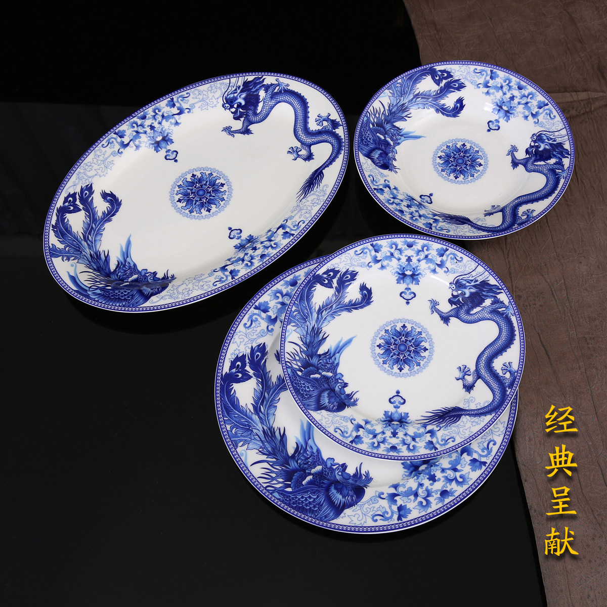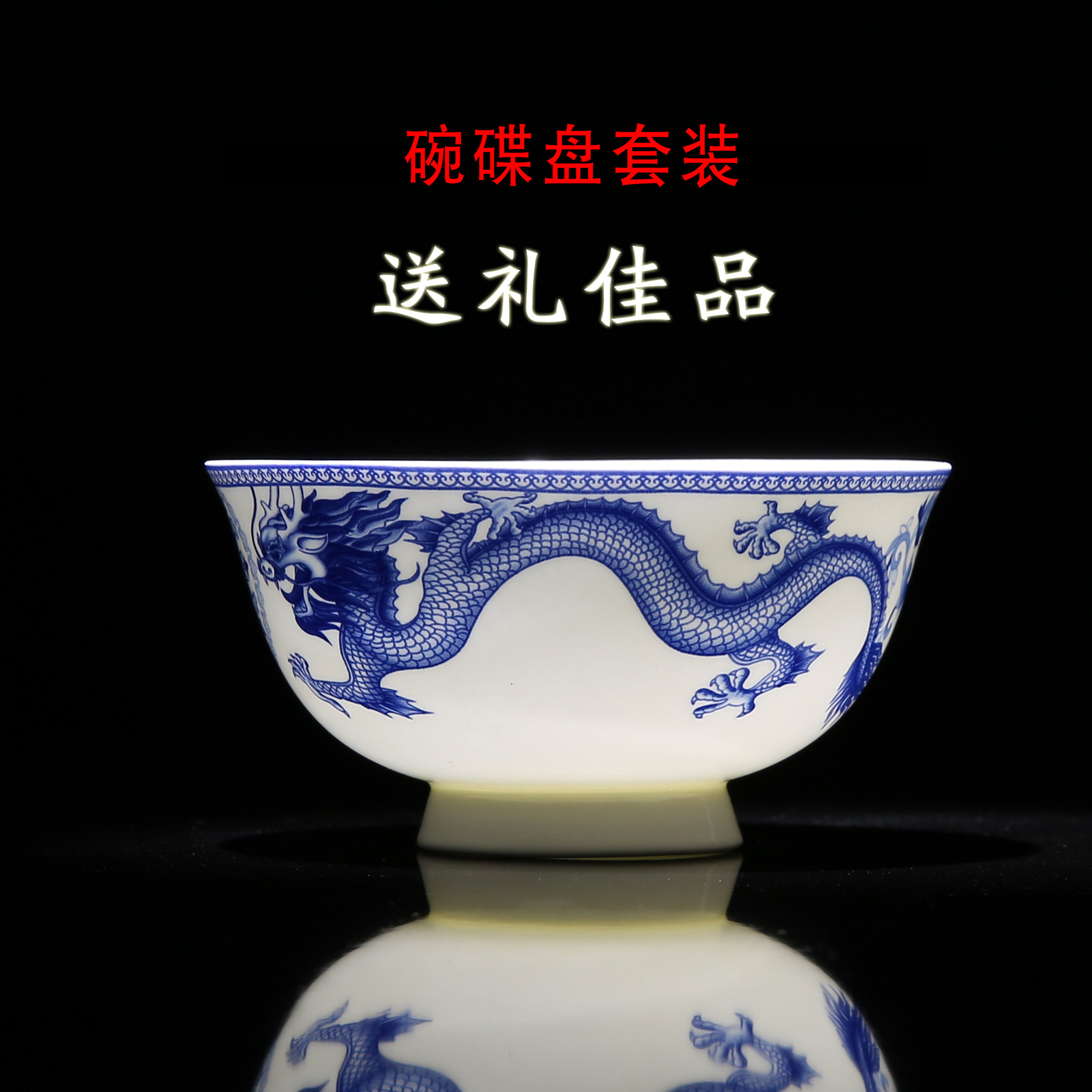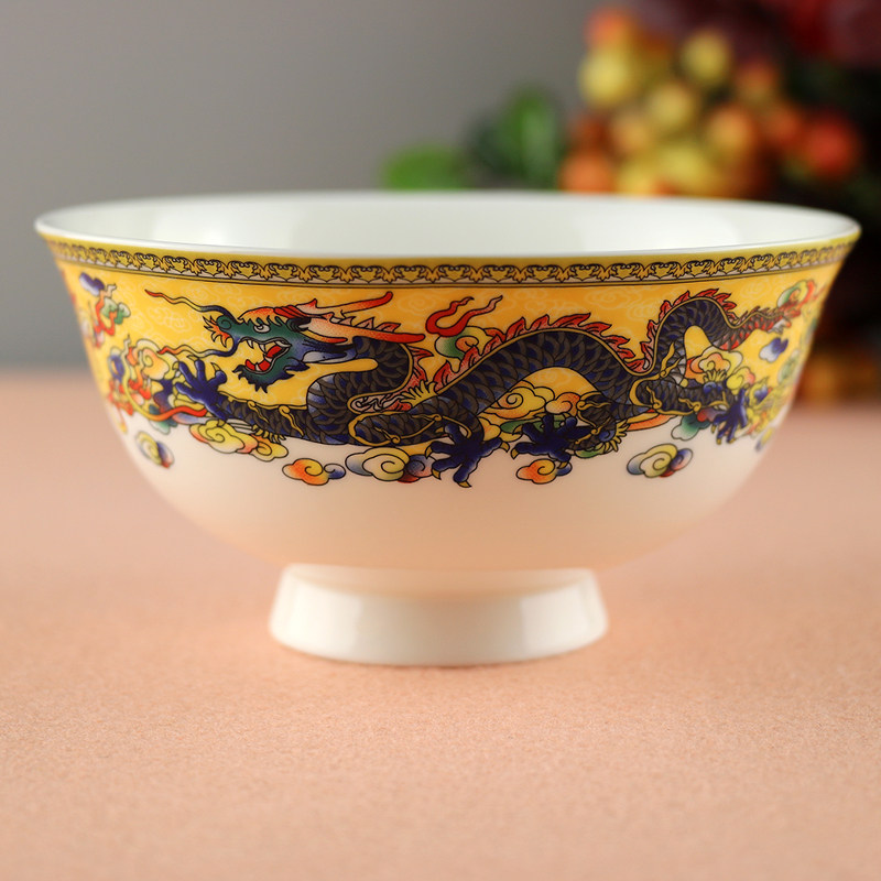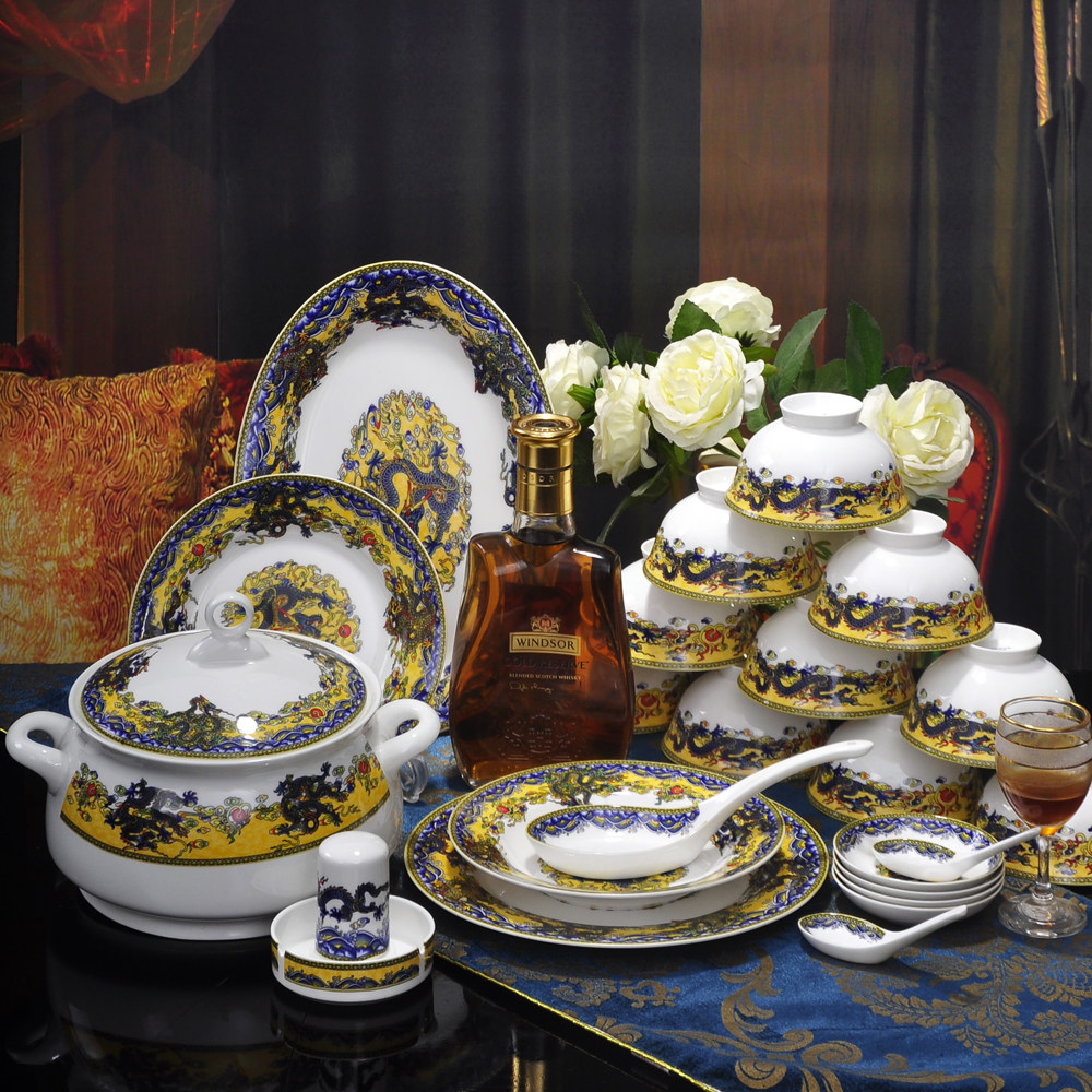 Home Chinese-style Dish Suit Jingdezhen Ceramic Dragon Phoenix Porcelain Ware Cutlery Combined Bone Porcelain Bowl disc Dish Courtesy