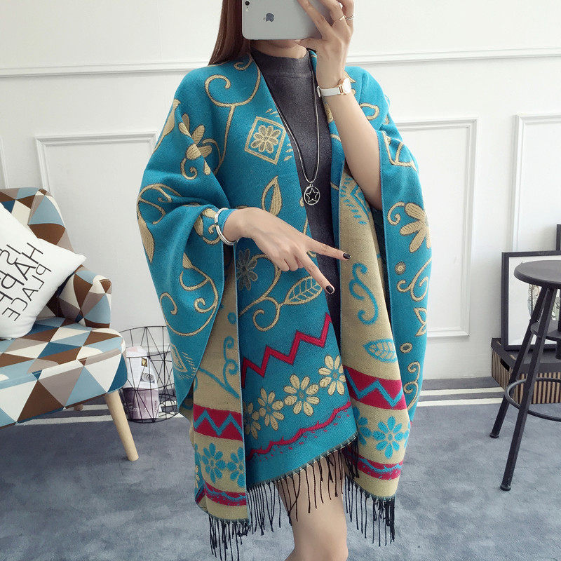 Bifacial oversized national wind cape Shoulder Scarf Cloak Cape Shawl Jacket Lady Autumn Winter Thickened Shawl Lady Winter Cloister