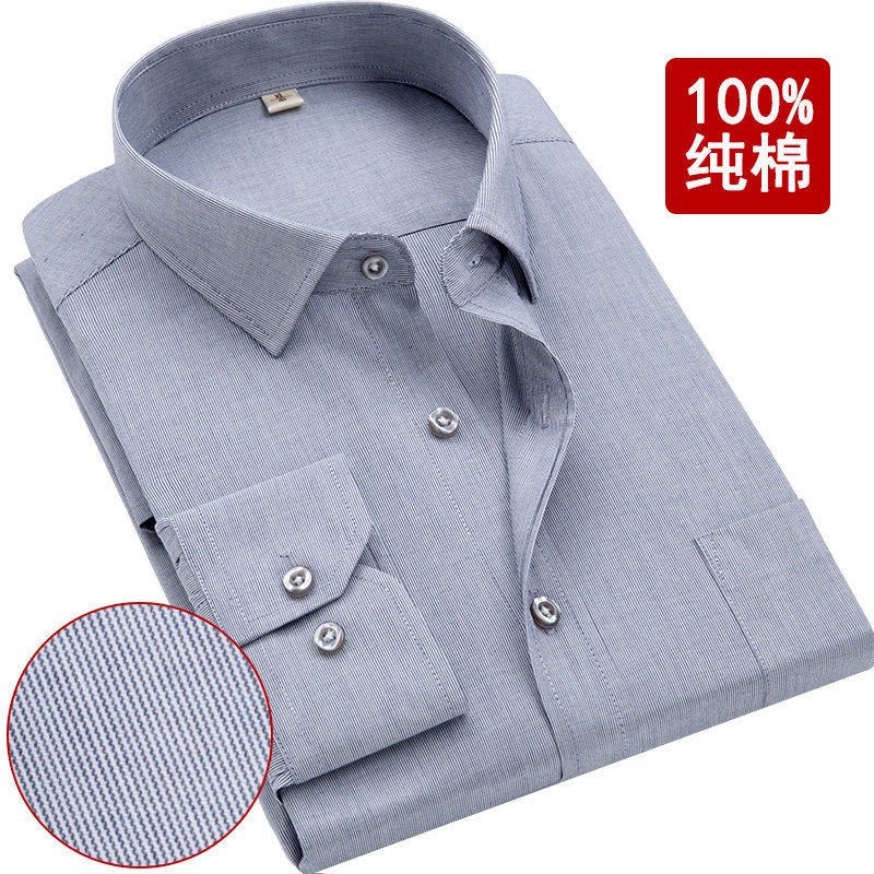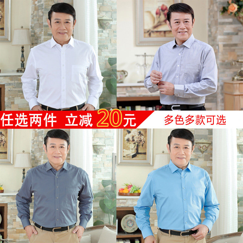 Middle-aged men's shirt Long-sleeved summer cotton dad's shirt Large size loose cotton top Middle-aged white shirt