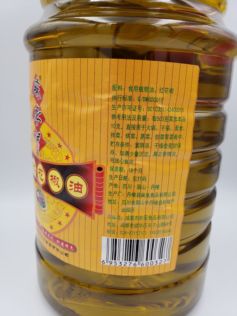 Hemp Comfort Pepper Oil Red Pepper Oil Sichuan Hemp Pepper Oil Sesame Oil Sesame Oil Seasoned Oil Net Heavy 2500ML