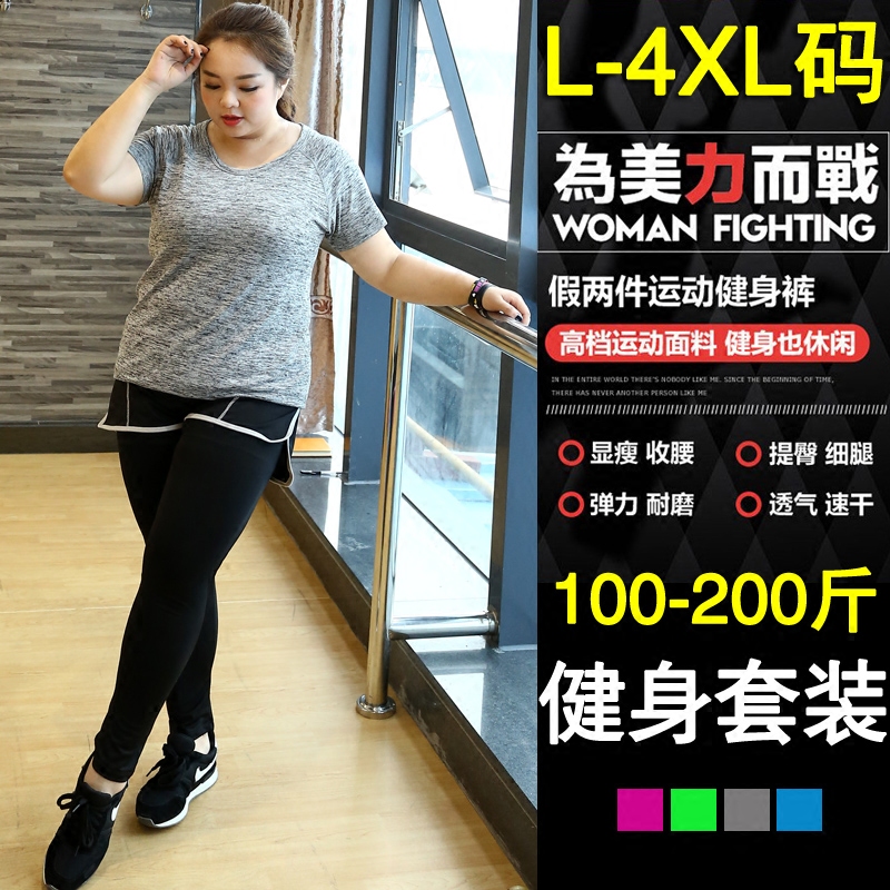 Large size fitness suit woman 200 catty MM sports speed dry suit running suit women yoga long pants slim fit