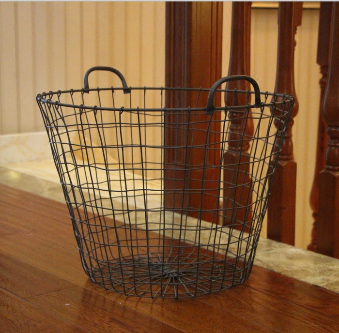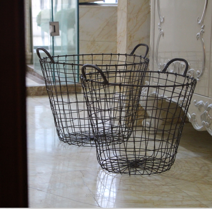 Dirty clothes storage barrel iron finishing storage iron basket iron wire hand basket woven basket K9t5EvNgp9