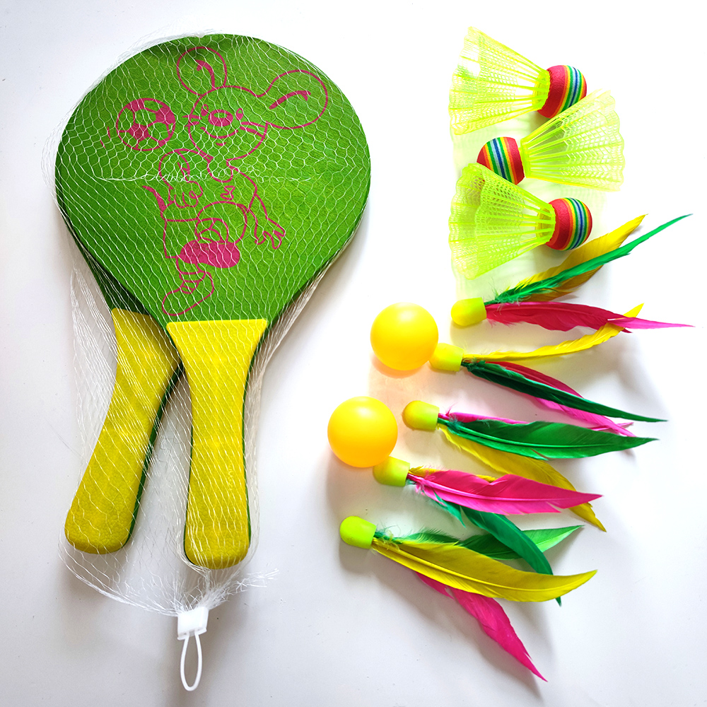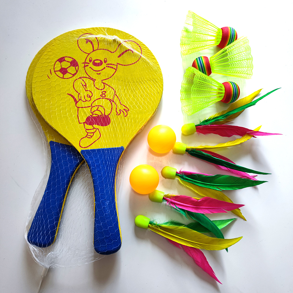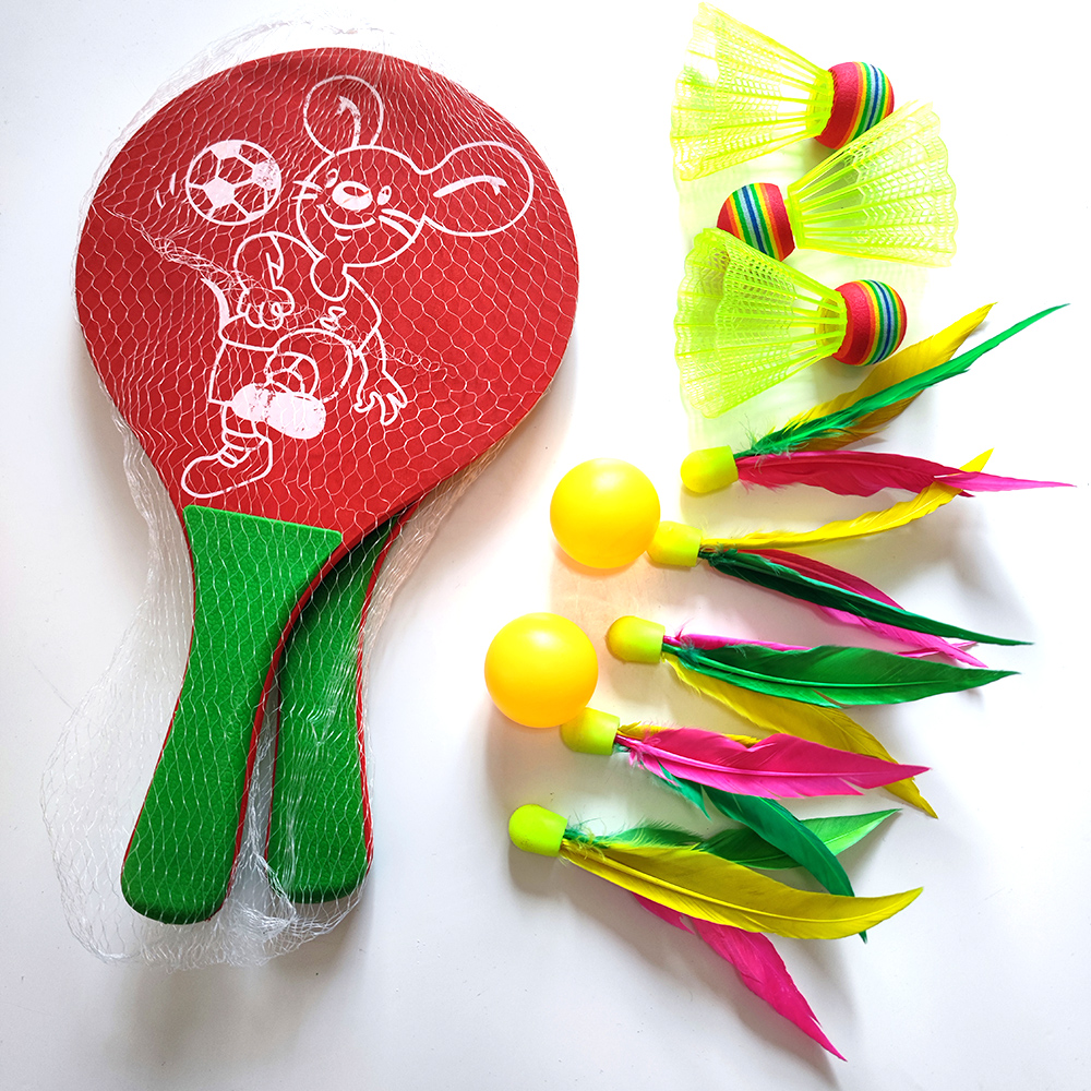Feather cricket racket Beach clapboard Feather clap three hair ball Feather board racket send ball Poplar cartoon children student exercise