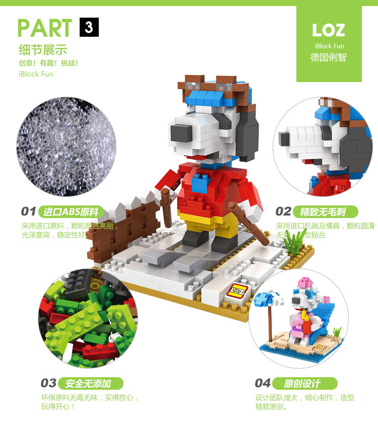 German Lizhi loz Snoopy small particle diamond assembly toy puzzle plug miniature building blocks