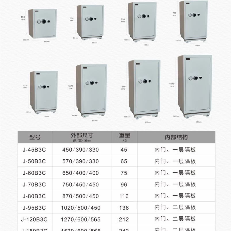 Off-white 45B3C Weight 90 catties Height 45CM Capacity 43L Off-white 50B3C Weight 124 catties Height 57 Width 39 Depth 33CM Off-white 60B3C Weight 14
