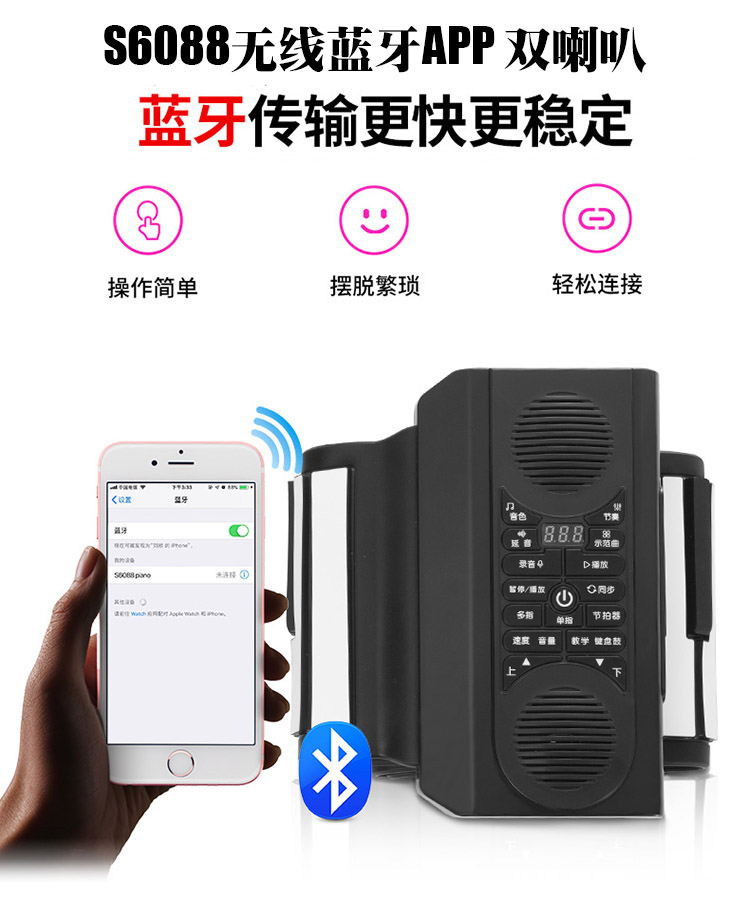 White 88-key lithium battery can be charged 10 samples Gift White 88-key upgrade version S6088 Wireless Bluetooth APP teaching dual horn microphone function gift pack