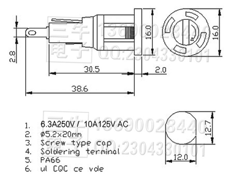 R3-54A fuse holder 5x20 10A125V 6 3A250V glass fuse holder fuse box