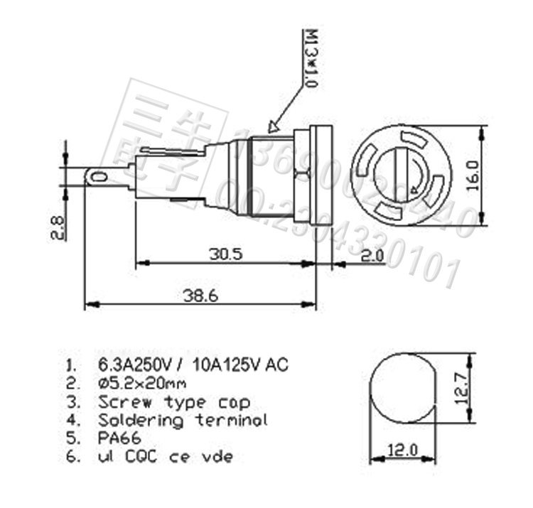 R3-54B Fuse holder 5x20 fuse holder Fuse box Fuse holder Imported quality FUSE