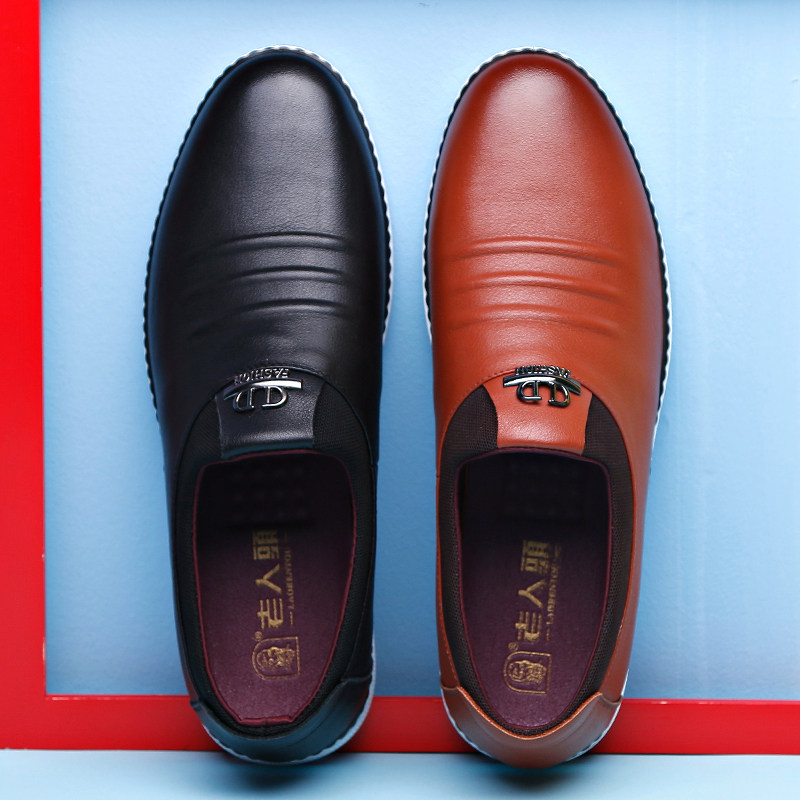 Old man's shoes spring and autumn men's leisure leather soft leather feet English wind youth leisure driving shoes