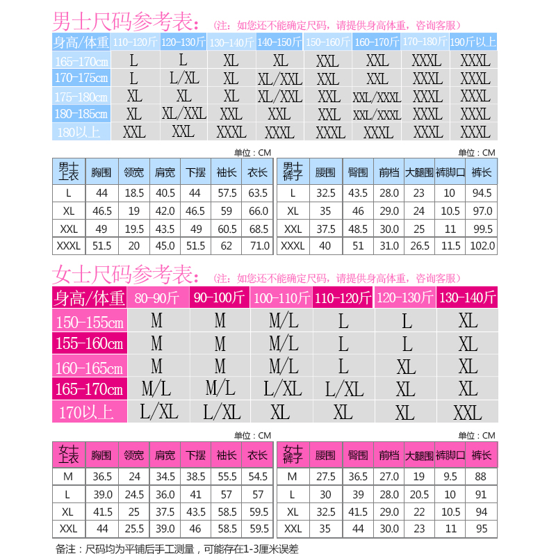 Male L 170 Male XL 175 Male XXL 180 Male XXXL 185 Female M 160 Female L 165 Female XL 170 Female XXL