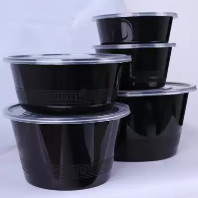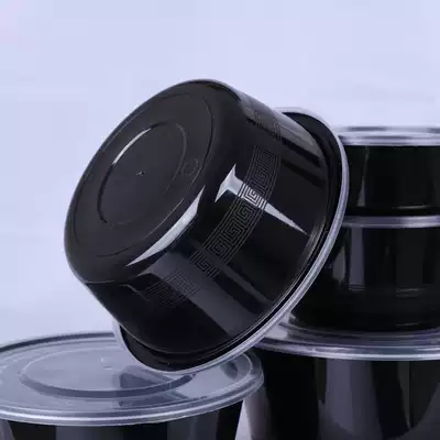 Beautiful disposable round black lunch box packing box plastic bowl sending fast food box soup bowl packing Bowl