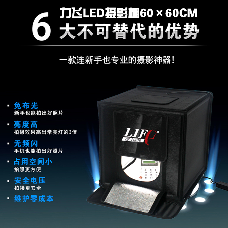 Force fly LED60CM photo shed suit high power Taobao small photography light box soft light box photographic lamp equipment