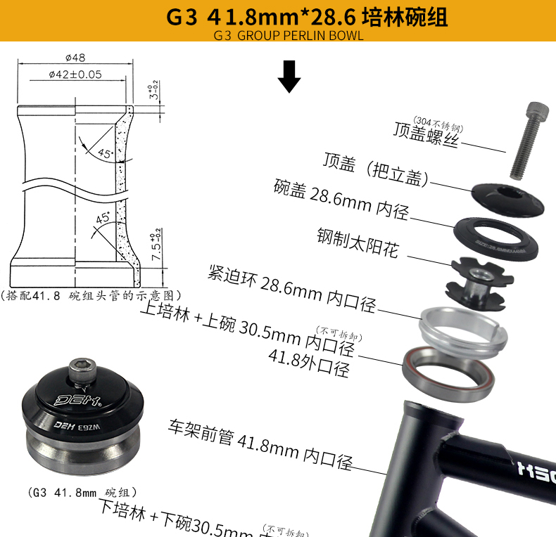 Bicycle mountain bike head bowl dead fly road bike bearing 41 8mm wrist set fork external