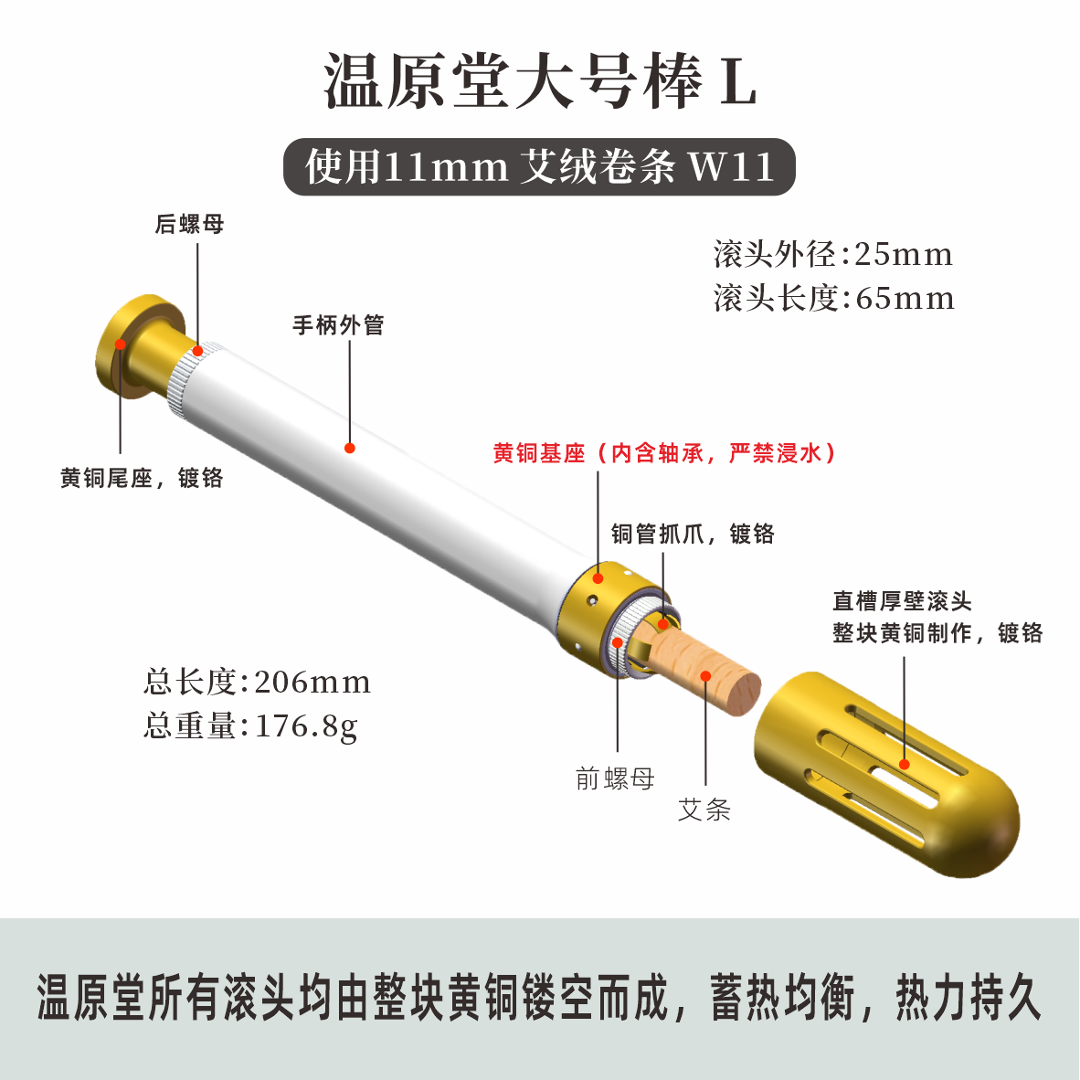 Warm Original Hall Big separated Moxibustion Rod Zodennes Professional Version Pure Copper Hollowed-out Warm Meridians with 11mm Ai Article