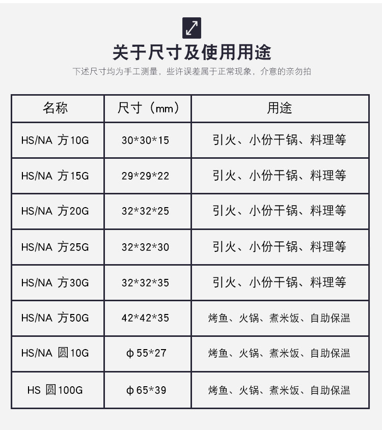 Curn Solid Alcohol Block Hotel Small Hot Pot Dry Pot Tool Outdoor Barbecue Ignition Burning Smoke-resistant Home