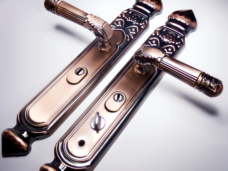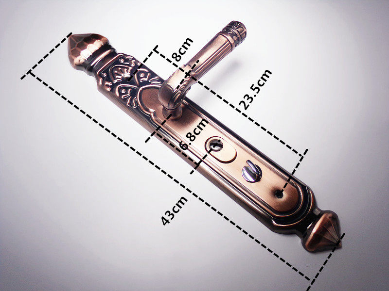 (Daily Special) Anti-theft door handle iron panel aluminum handle lock cylinder standard hole distance red bronze door