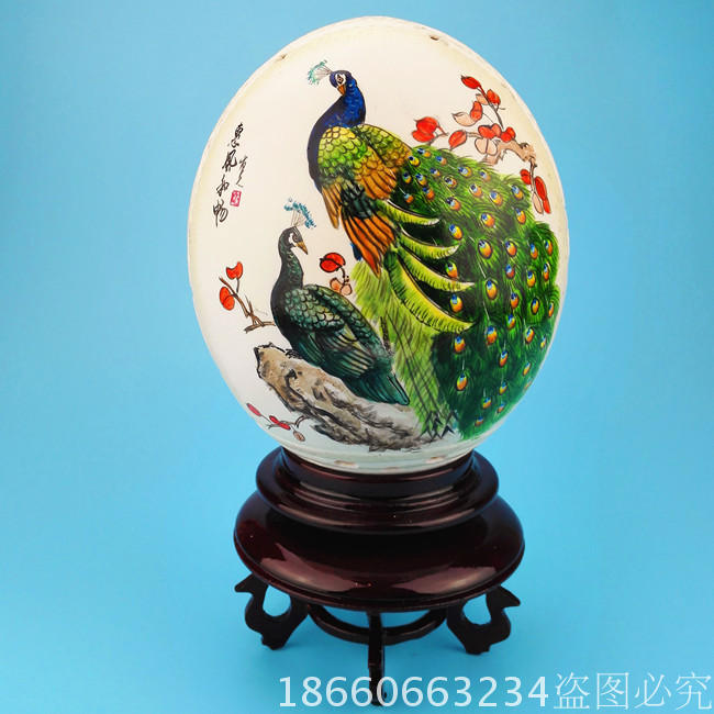 Ostrich Eggshell Engraving Craft Gift Hem Accessories Ostrich Egg Upscale Craft Gift Hem Accessories Base Handmade Painted Peacock Native