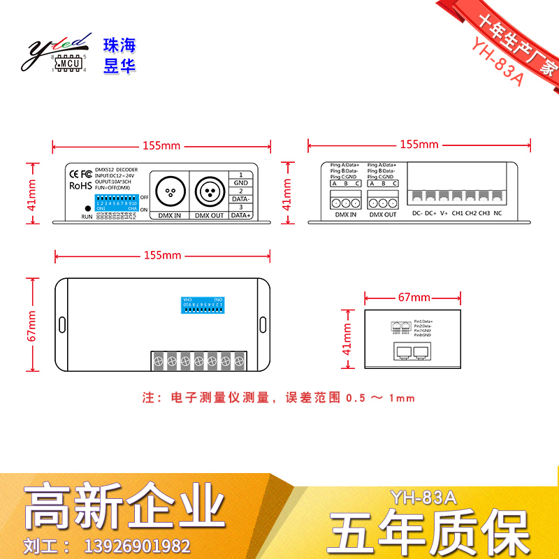 DMX512 decoder customized 5-24V constant voltage stage light with YH83A factory direct KTV dedicated