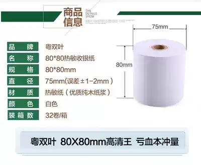 Guangdong double leaf cash register paper roll 80x80 thermal photocopy paper 80mm kitchen dining room cash register paper roll queuing number photocopy paper supermarket collection small ticket paper