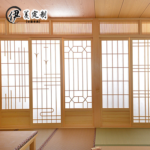 Japanese-style sliding door tatami lattice door custom restaurant sliding door partition folding door custom