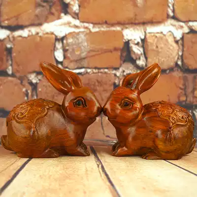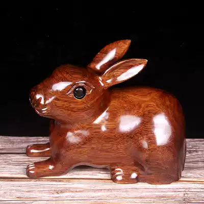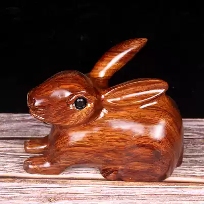 Dongyang wood carving solid wood iron pear rosewood wood zodiac green wood rabbit Mahogany rabbit animal ornaments