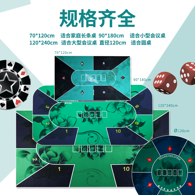 Texas Hold'em Tablecloth Rubber mat Chip Stud Mat Rectangular round table Flannel tablecloth Table Mud table mat