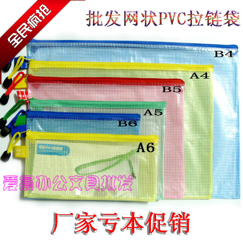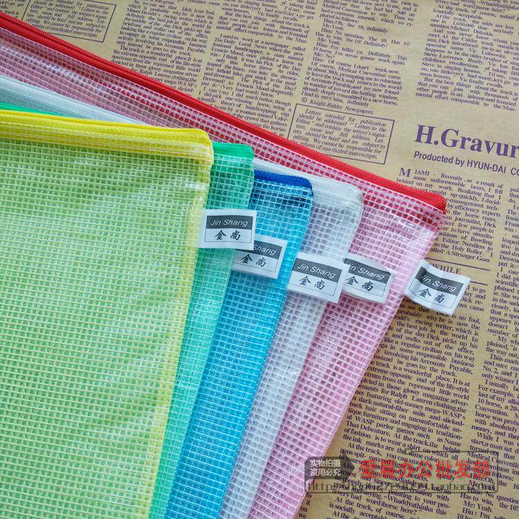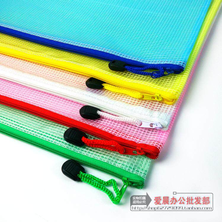 Grid Pull Chain Bag Wholesale A4 Color Mesh Bag File Bag Waterproof Exam Bag Kit Office Supplies Wholesale