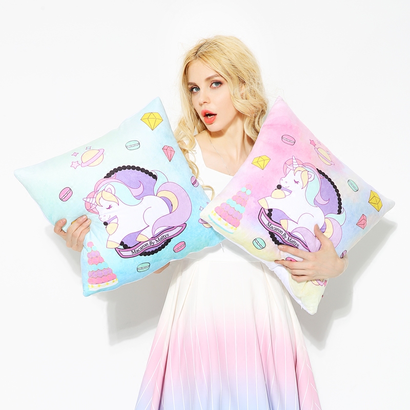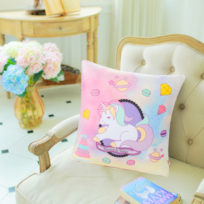 Strawberry Halfpond Unicorn Macaron Original Design Creative Gift Cute Cuddle Back Cushion Removable with Core