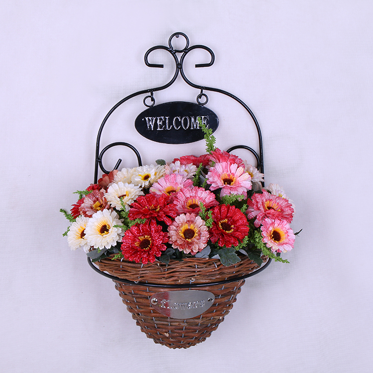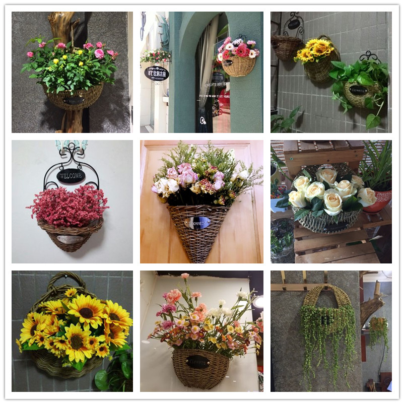 Wall hanging flower basket Hand woven grass woven willow woven large hanging flower pot Wall decorative hanging basket creative rattan woven wrought iron