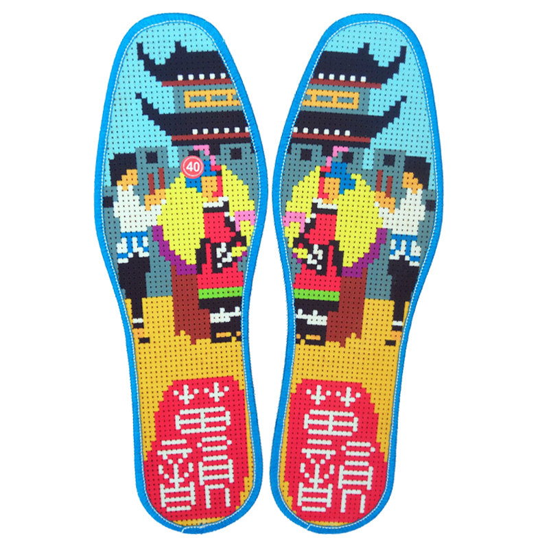 Cross-stitch insole cotton pinhole printing new semi-finished products for men and women with needle and thread breathable sweat-absorbing hand-made embroidery