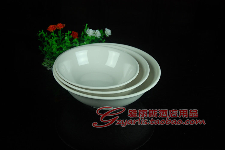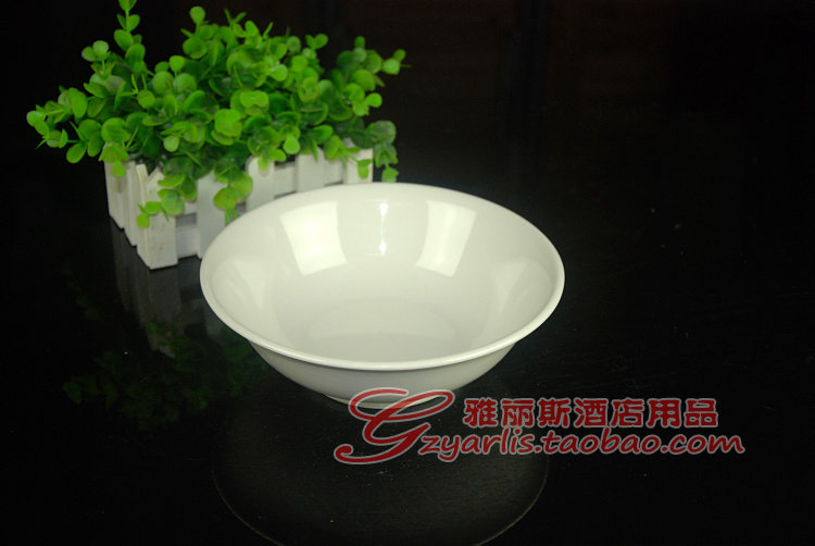 Imitation porcelain tableware reverse mouth bowl soup bowl noodle bowl melamine white rice bowl porridge powder bowl thickened 6 inches 7 8 9 inches