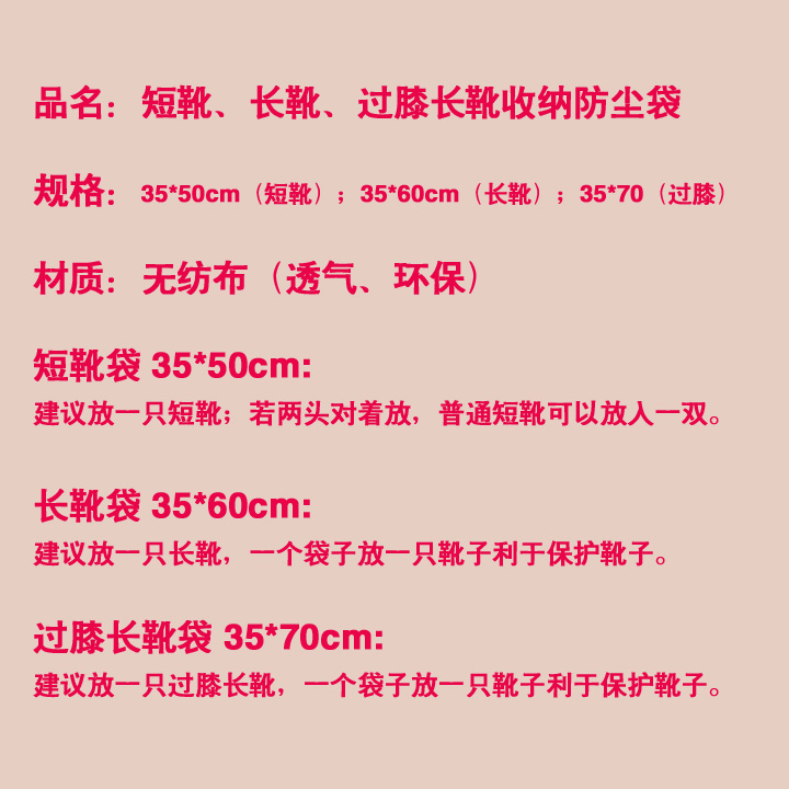 Boots dust bag Boots Boots dust cover Storage bag Boots dust cover storage non-woven bag
