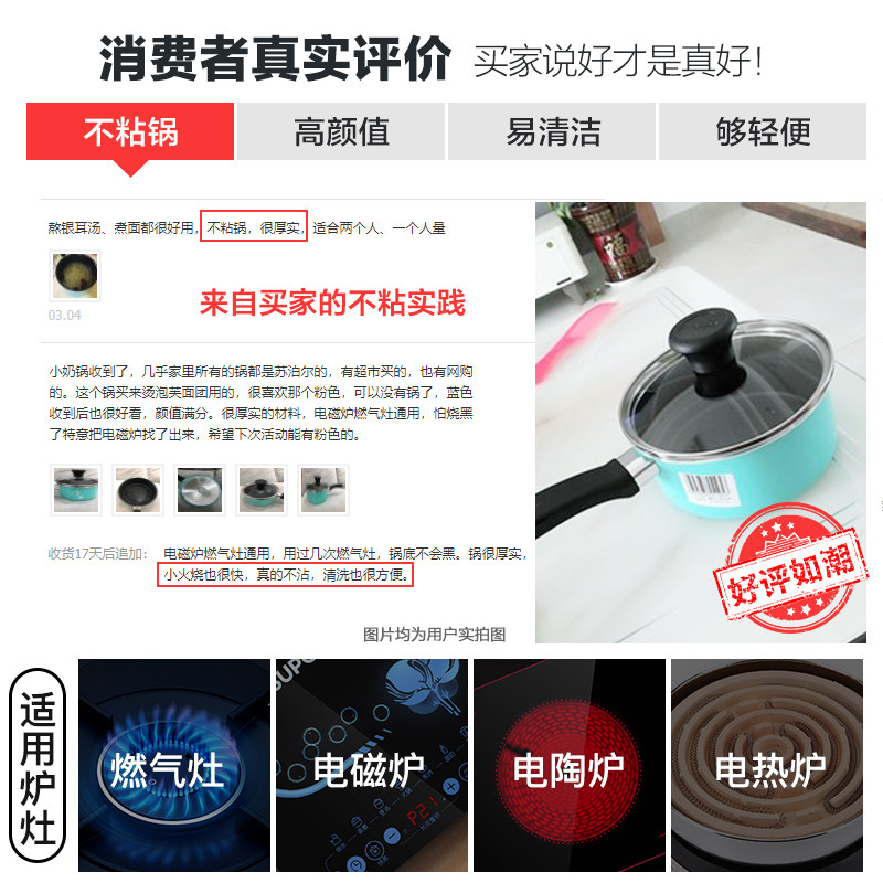 Suber milk pot non-stick pot small soup pot 16cm instant noodle boiled noodles boiled milk pot baby food supplement pot hot milk pot