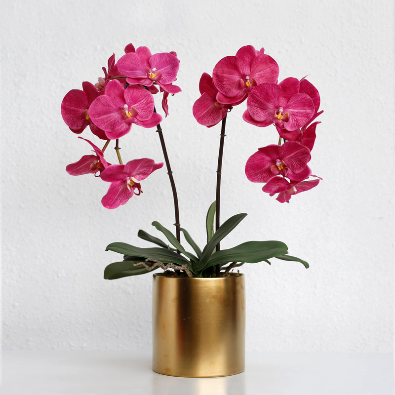 Rose red white three-headed white Phalaenopsis Golden vase Three-headed pink white Phalaenopsis Golden vase Double-headed white set (gold basin)Double-headed deep rose Red set(Gold basin)