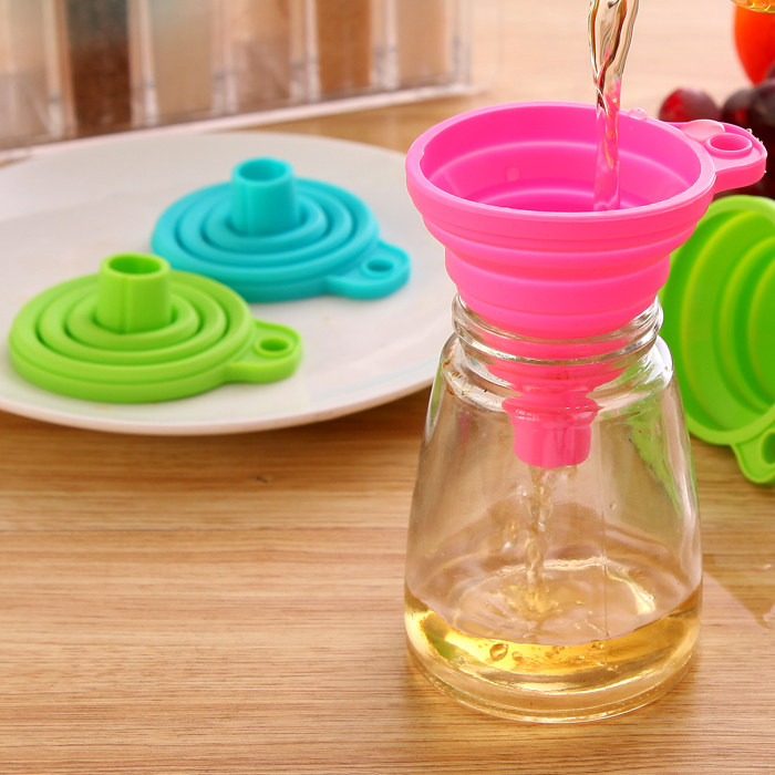 Small food grade silicone folding telescopic long neck kitchen oil leak creative household liquid dispensing mini funnel - Taobao