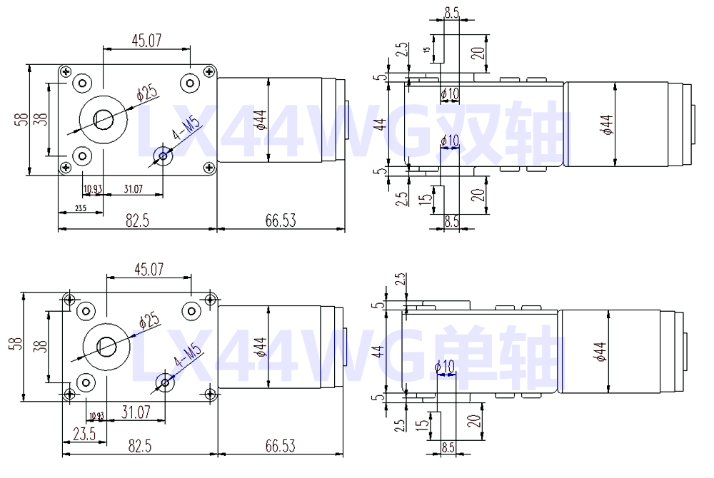 LX44WG double shaft worm gear reducer motor 12V24V worm gear reducer adjustable speed positive and reverse rotation