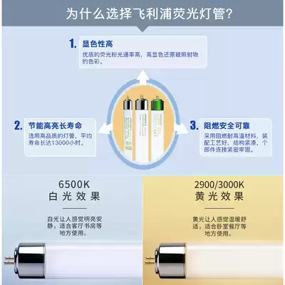 Philips t5t8 fluorescent tube long household old-fashioned 865 three-color fluorescent 18 28 30 36w electric lever