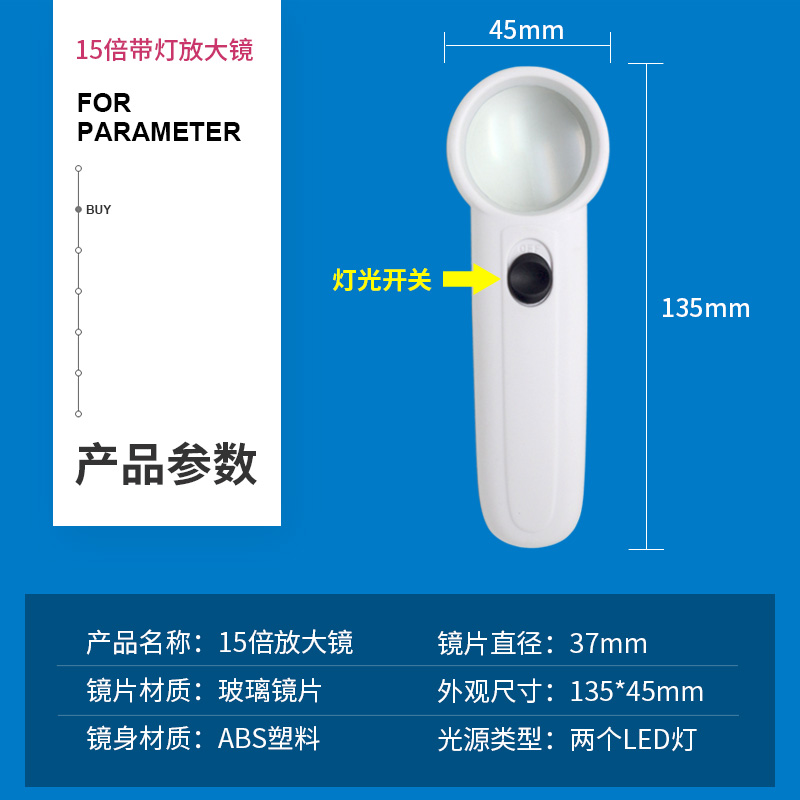Double LED lights 15 times high-definition hand-held magnifying glass PCB repair soldering magnifying glass elderly reading glass magnifying glass